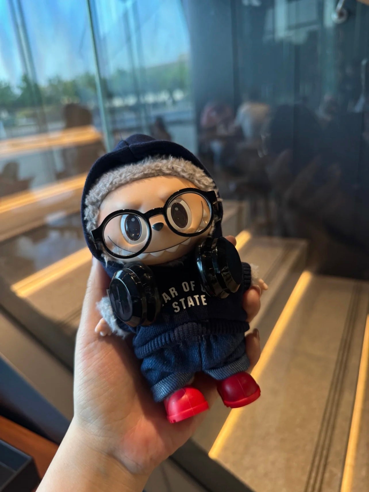 Five-piece set includes: sweater + pants + glasses + shoes + headphones