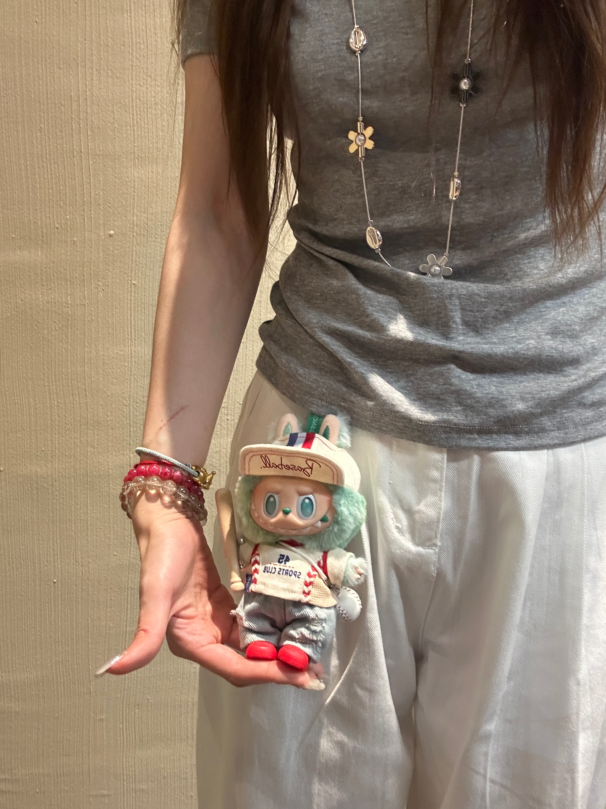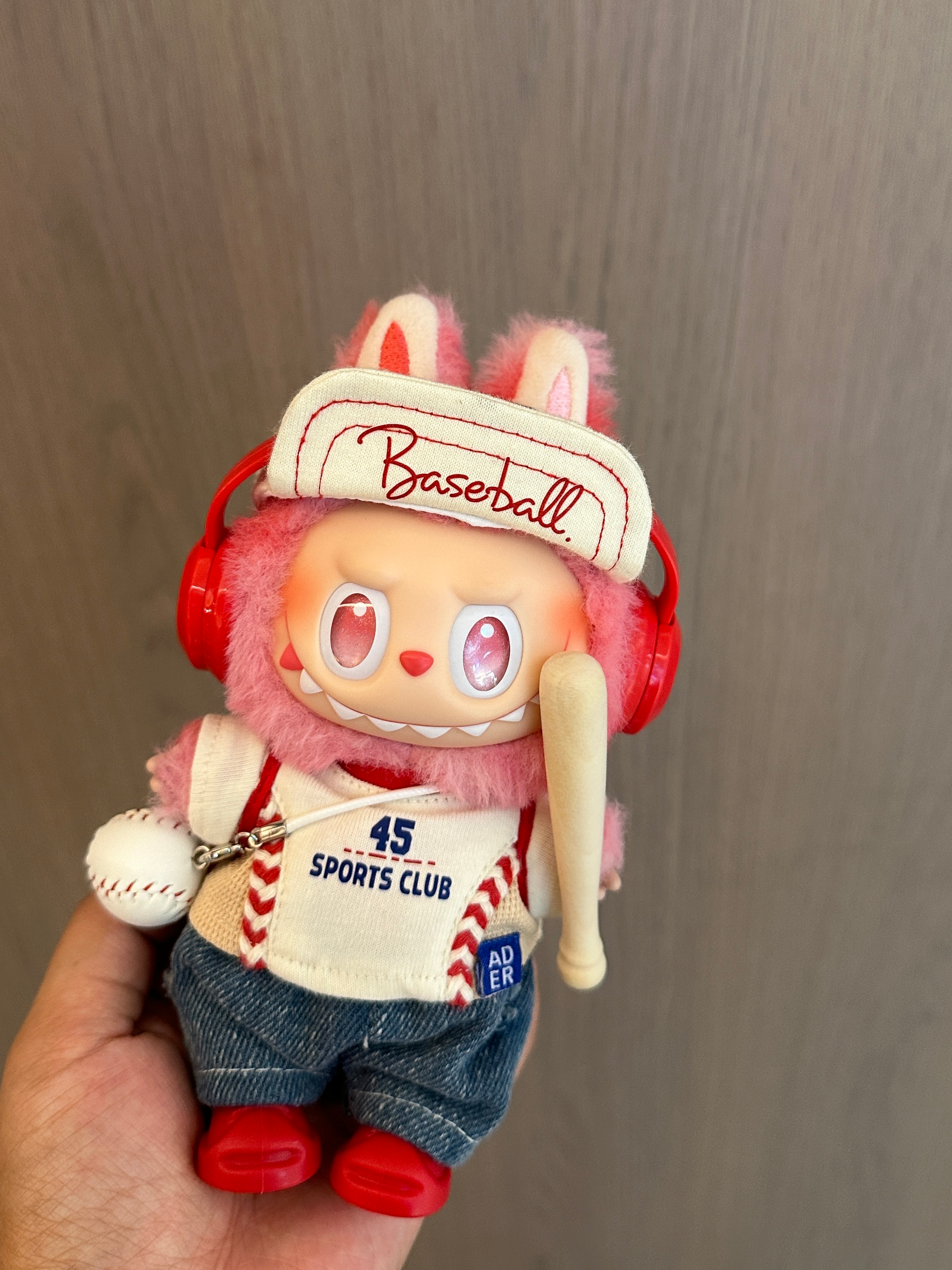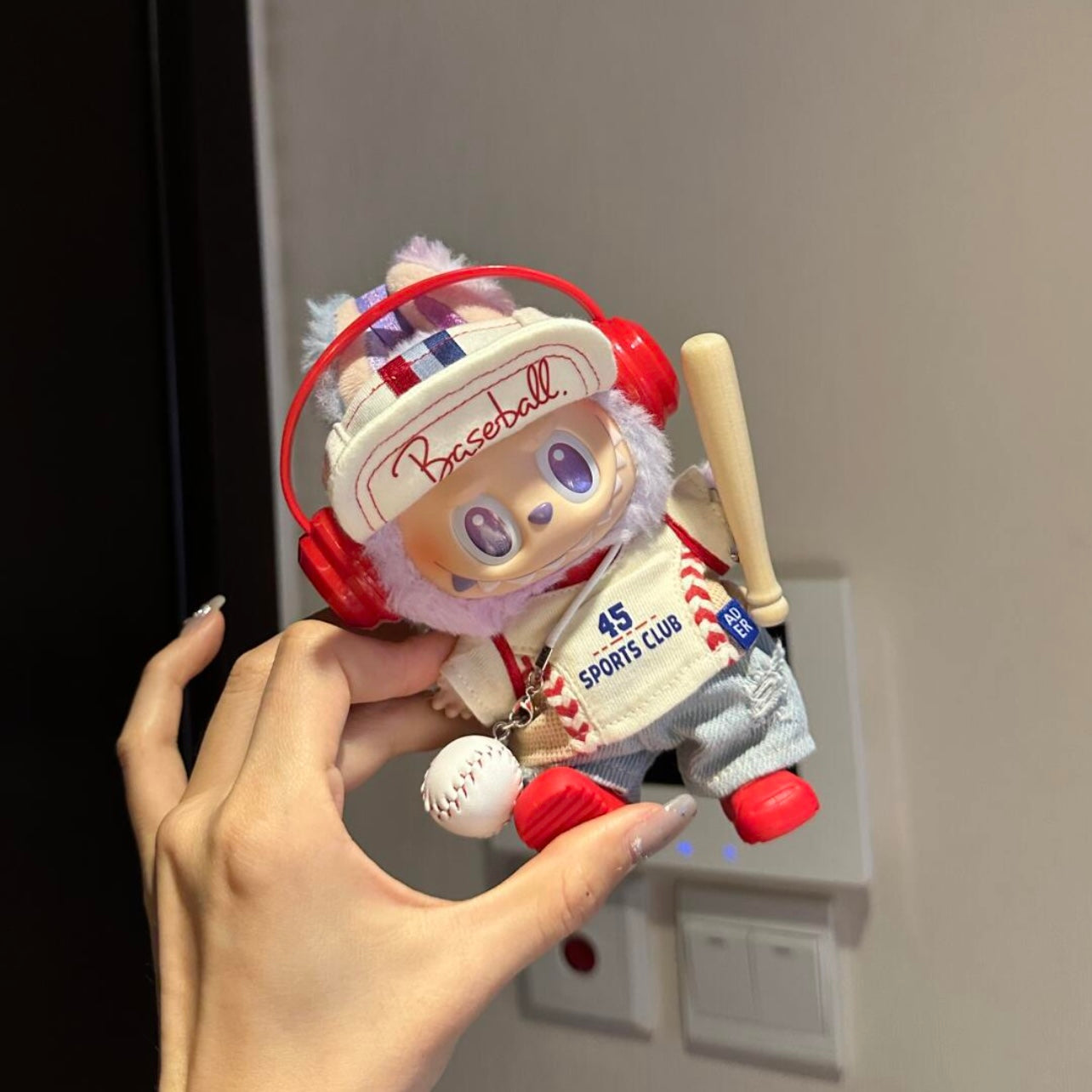 Seven-piece set includes: headphones + baseball cap + top + jeans + shoes + baseball crossbody bag + baseball bat