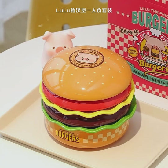 Lulupig Cute Burger Serving Plate Set inspired by the goofy Lulupig image and delicious, tantalizing burgers, is a perfect blend of food and fun.